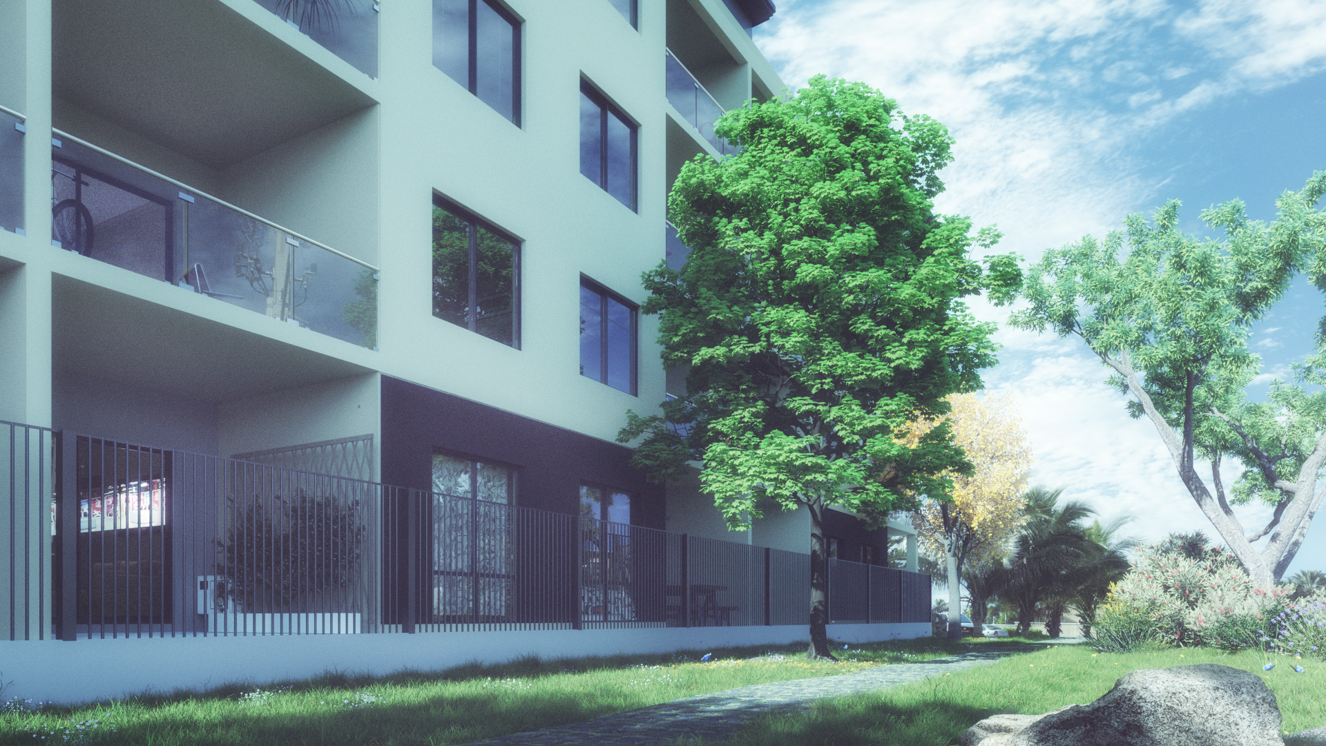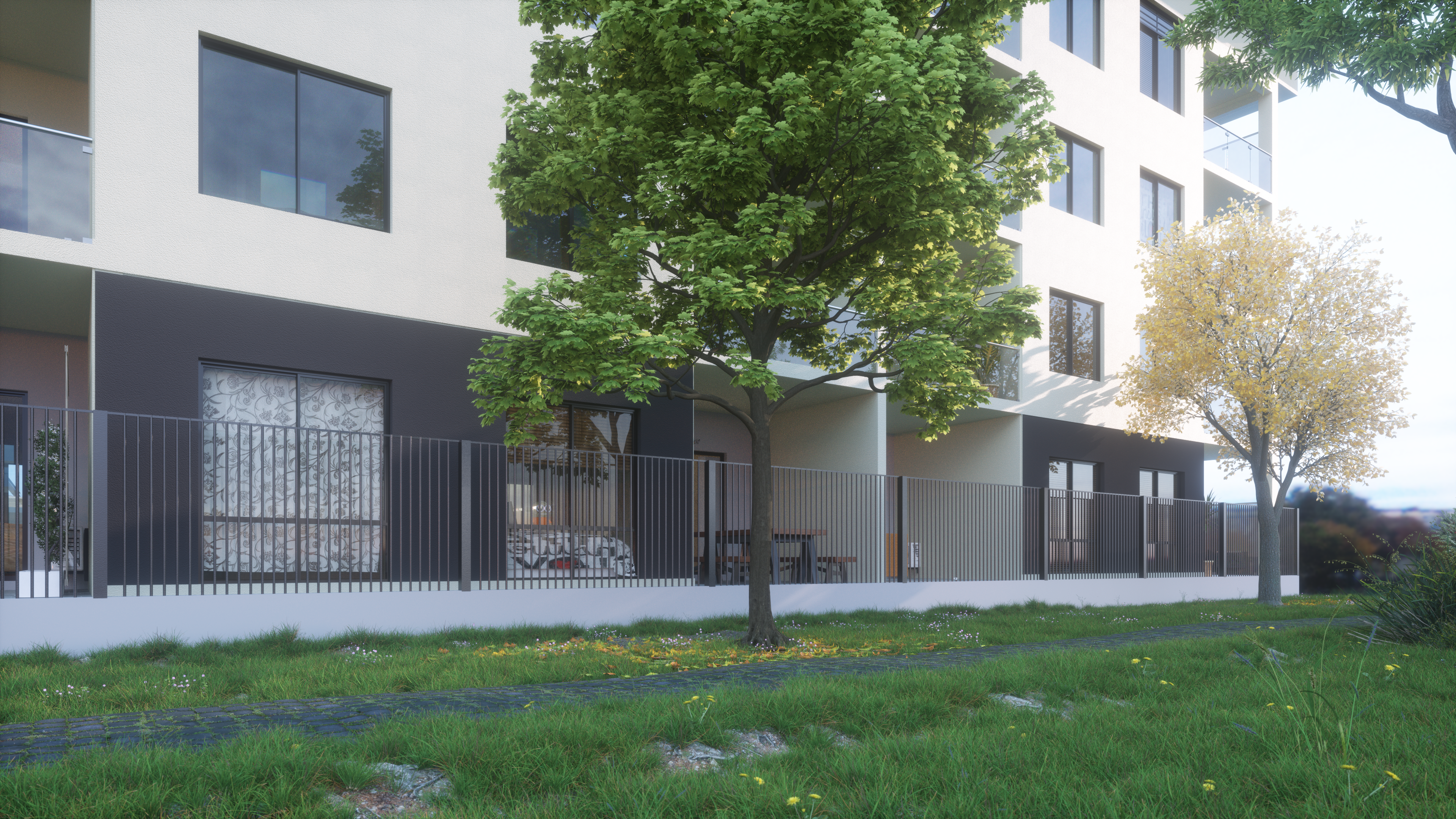 apartment pathway and natural grass