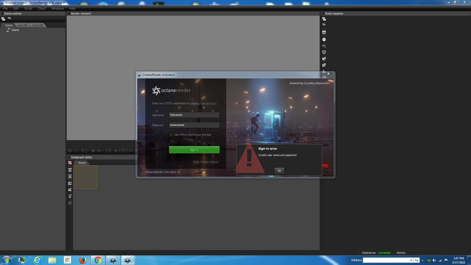 • Switched to a totally new authentication system based on your OTOY account and not the old Octane customer account. Due to that there is no explicit ORC login required anymore and no license needs to be entered anymore. For more details please read the new features thread.