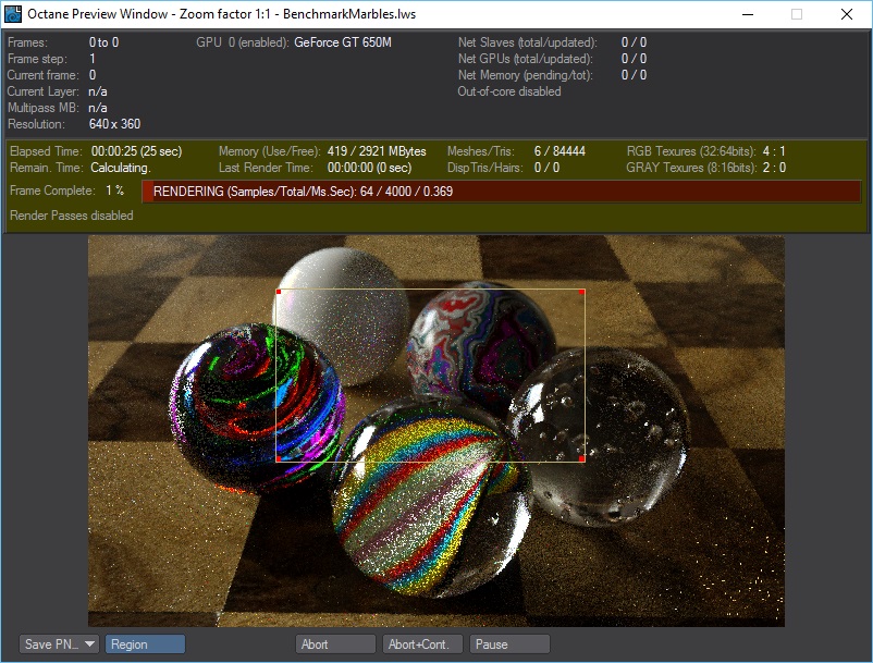 Boris, I am testing the limited region feature and it seems to work fine here. Perhaps the problem is that you are trying to use it in the IPR window ... the IPR doesn't support the region rendering yet. I will add this feature in a future release.BorisGoreta wrote: Limited region is not working, I thought this was enabled in this version.
