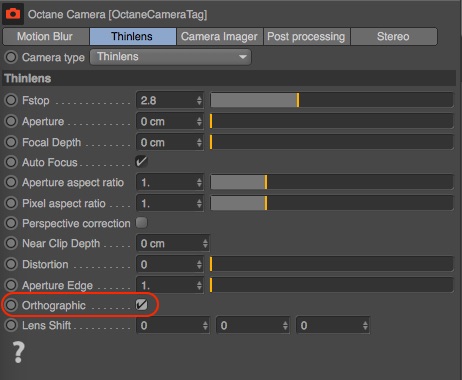 you have to tick the "Orthographic" option in the ThinLens preferences of an Octane Camera Tag ;)