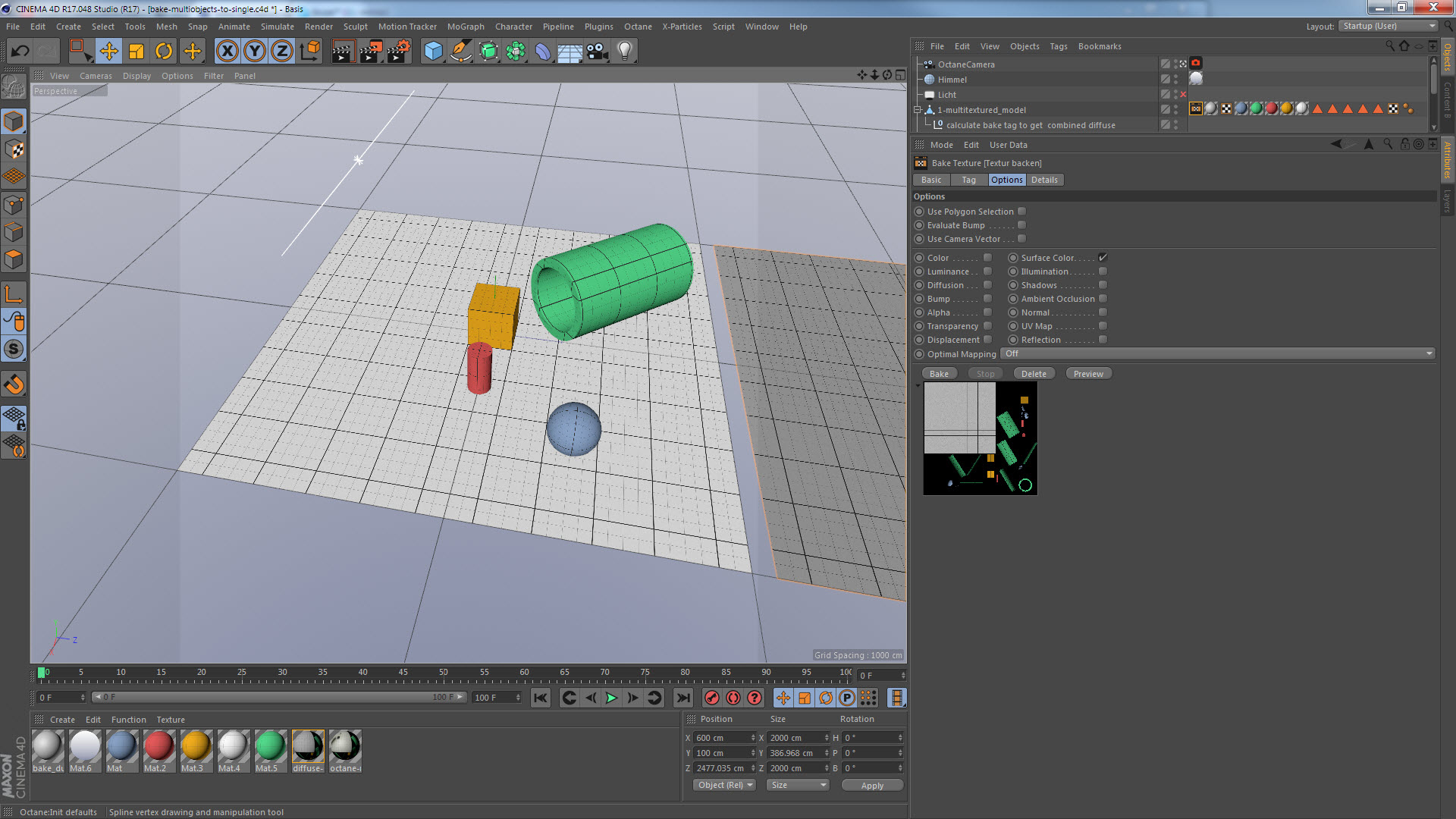 4- Create a new material and apply this result image from baking process. Add an Octane object tag and set bakeID=2.