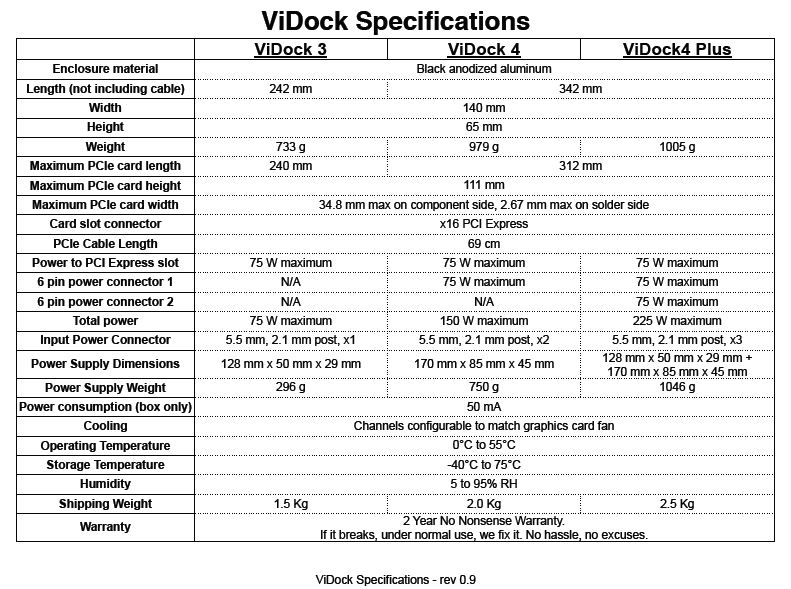 "The ViDock 4 Plus can support a GTX460, GTX470, and the GTX560 TI or GTX570 IF they stay within the powers specifications that Nvidia has set. You will need to check the cards' specific manufacturer for full power requirement details.