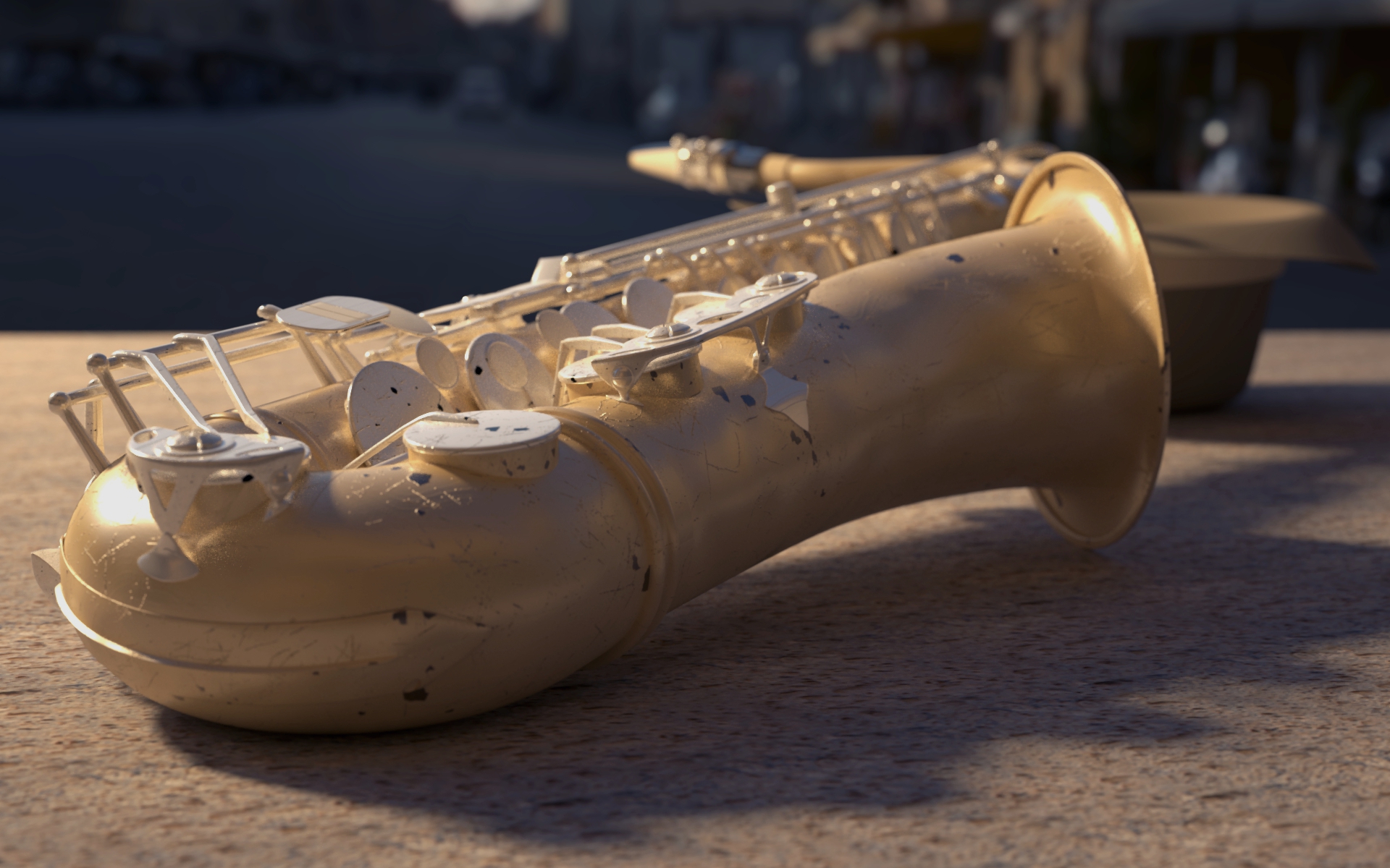 Try to find a indoor HDRI environment and background pic and composite the sax in the photo.