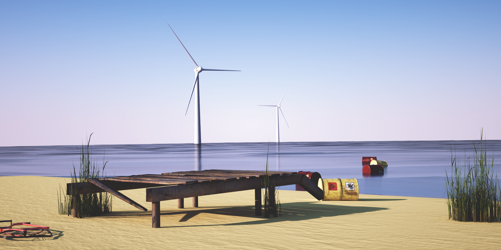 Nice scene, but the "Truman Show effect" is too obvious. You should extend the sea surface to push the horizon far behind the second pylon. ;)