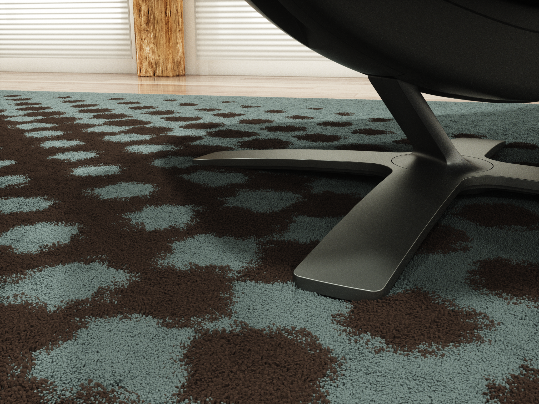 I thought I’d try some instancing in Lightwave. The rug has over 500,000 instances, set up to deform away from the feet of the furniture automatically, so the furniture looks as though it has settled down into the rug pile. Octane 3 handled things well. I’ll try a more intensive test next time.