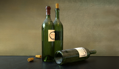 Whoaw ! Superb. How did you achieve the 'dust effect' on the bottles ?