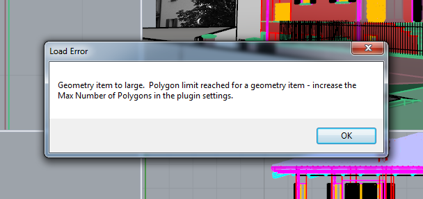 Hi - your system has 8GB of RAM - is that correct? If this is the case, that is probably insufficient to load that scene. The "Out of memory (System RAM)" means the plugin could not allocate a memory block big enough to load the number of polygons you have set in the "Max Number of Polygons" setting. In some cases you can get around this by ticking Live Geometry Update on the large mesh items in the scene, but really - you need more RAM.