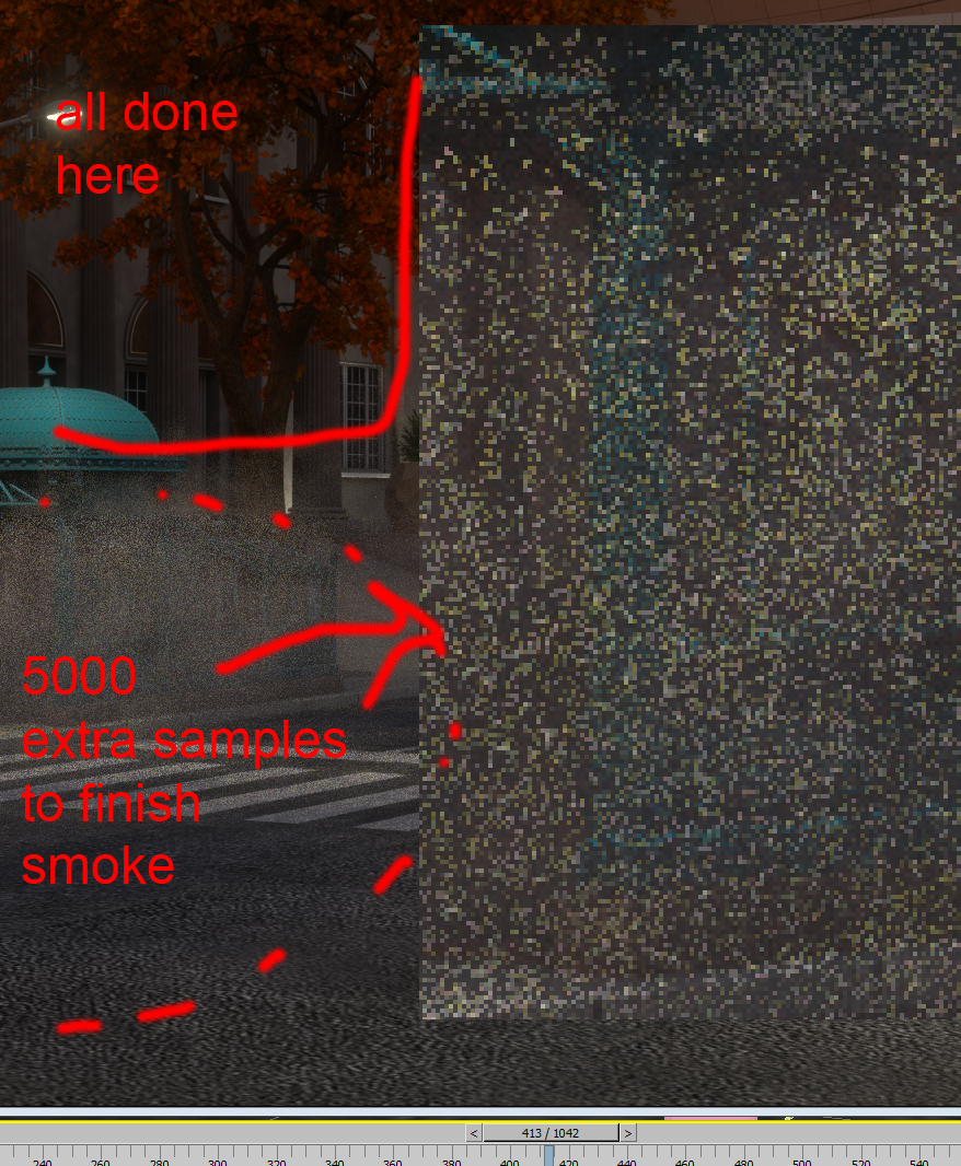 Can we have fake/ secondary coherent feature just for VDBs like smoke, etc. (or add more samples to smoke, fire like we add samples to lights ) We have to wait extra 5000 samples per frame at least with smoke to get it to okay noise level especially if we use artificial light like light posts