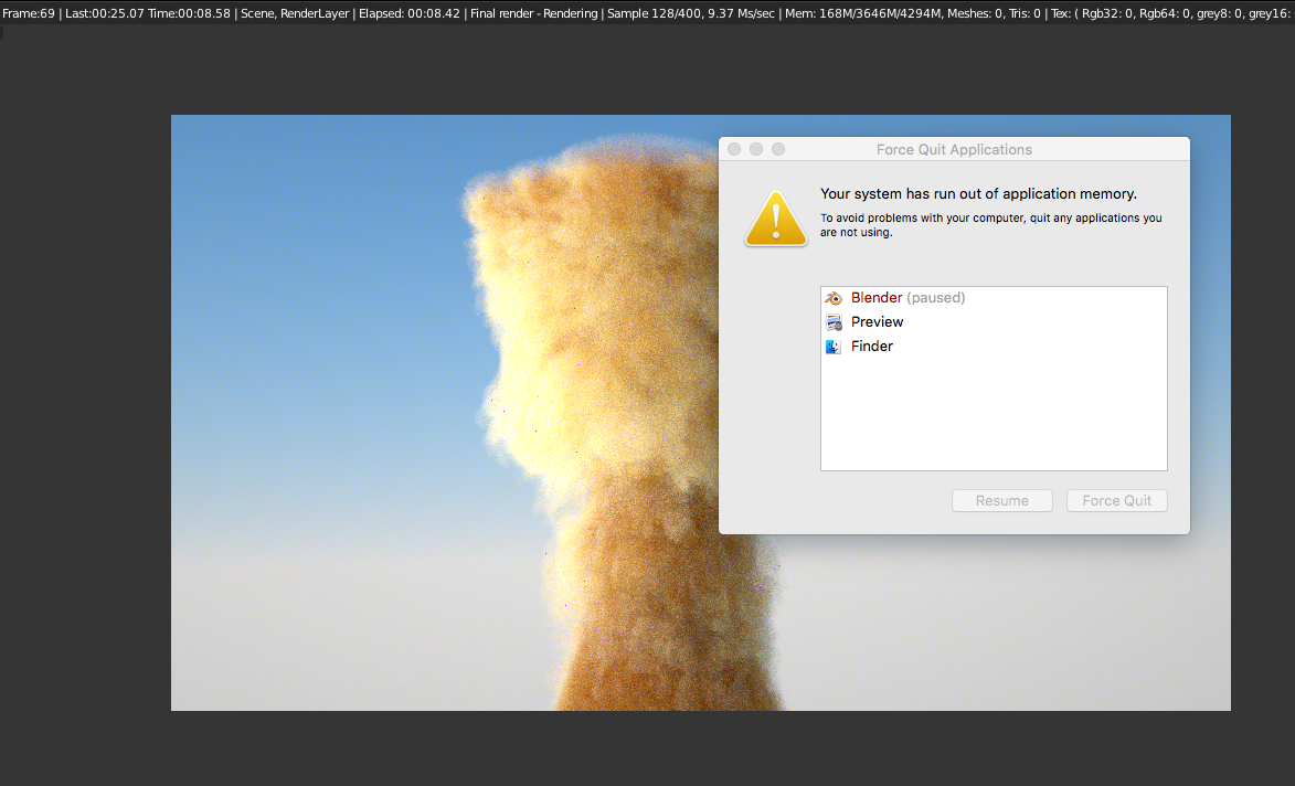 I get about 90 - 110 frames into an animation when OS X pops up an error that reads "Your system has run out of application memory. To avoid problems with your computer, quit any applications you are not using."