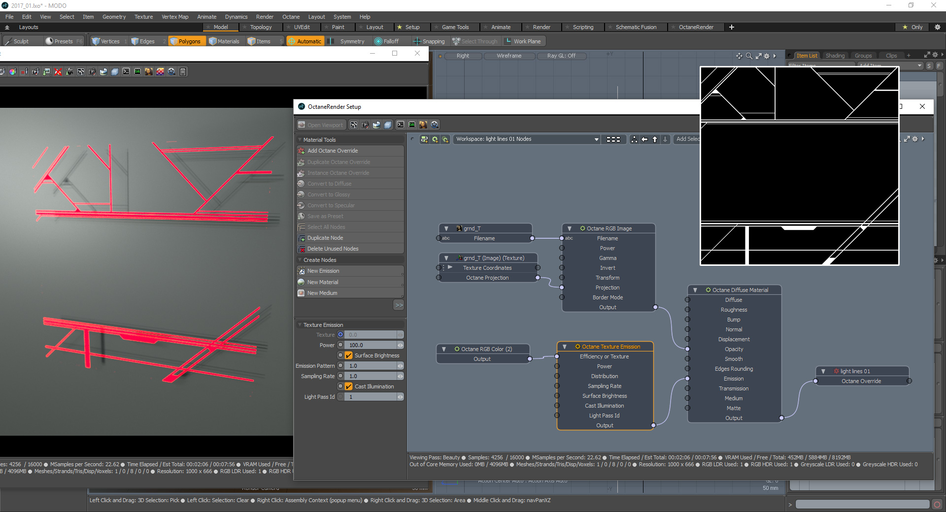 I have a plane with a texture on opacity which emits light. (see attachement)