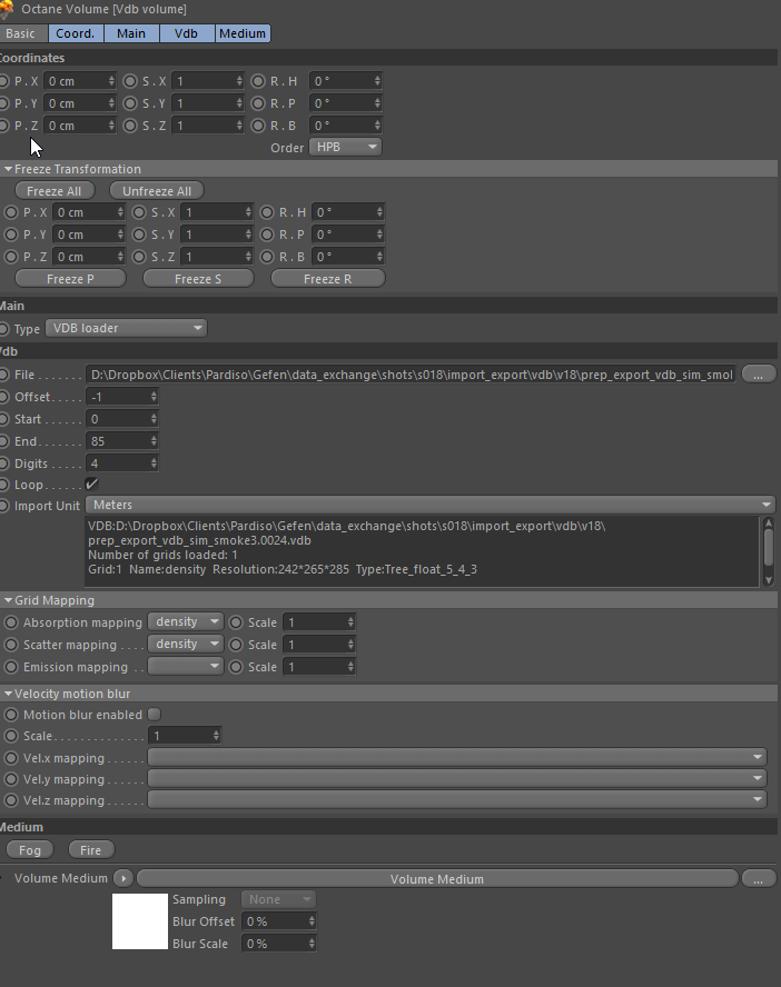 I have a VDB smoke simulation generated in Houdini and I'm trying to load it inside Cinema4D and render it with Octane