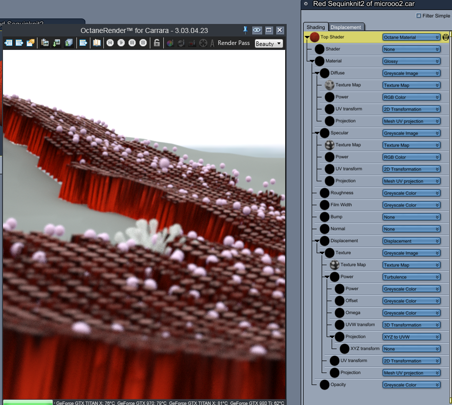 As already pointed out some time ago, there is a bug with displacement maps. In OR Standalone, it seems to work fine, but in Carrara, it gives me black holes in the models depending on the position of the camera :(