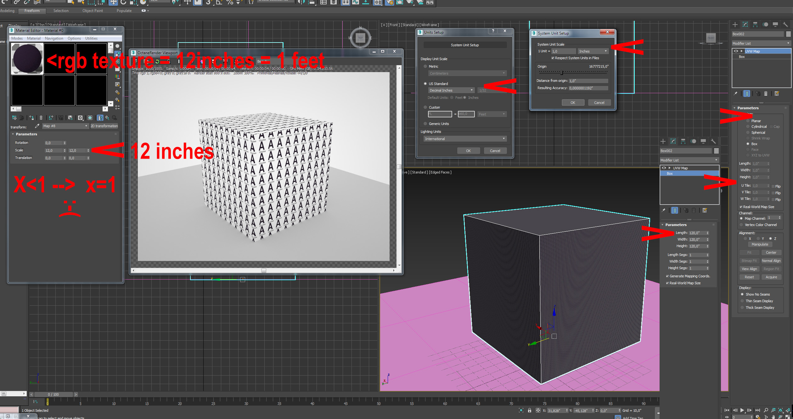for example if you have a 6 inches texture and unit scale Feet (in 3ds max) you will write in 2D trasformation slot 0.5 and it will work fine.