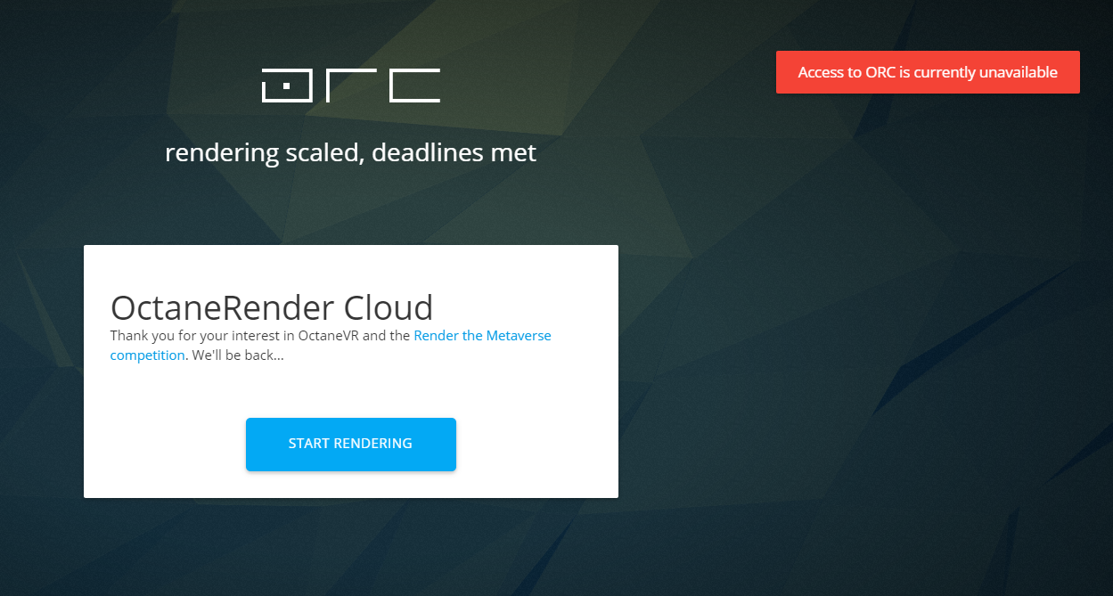 I am trying to access to ORC, when I send my scene it opens my internet browser with ORC page, when I hit the button the message says that ORC is currently unavailable.