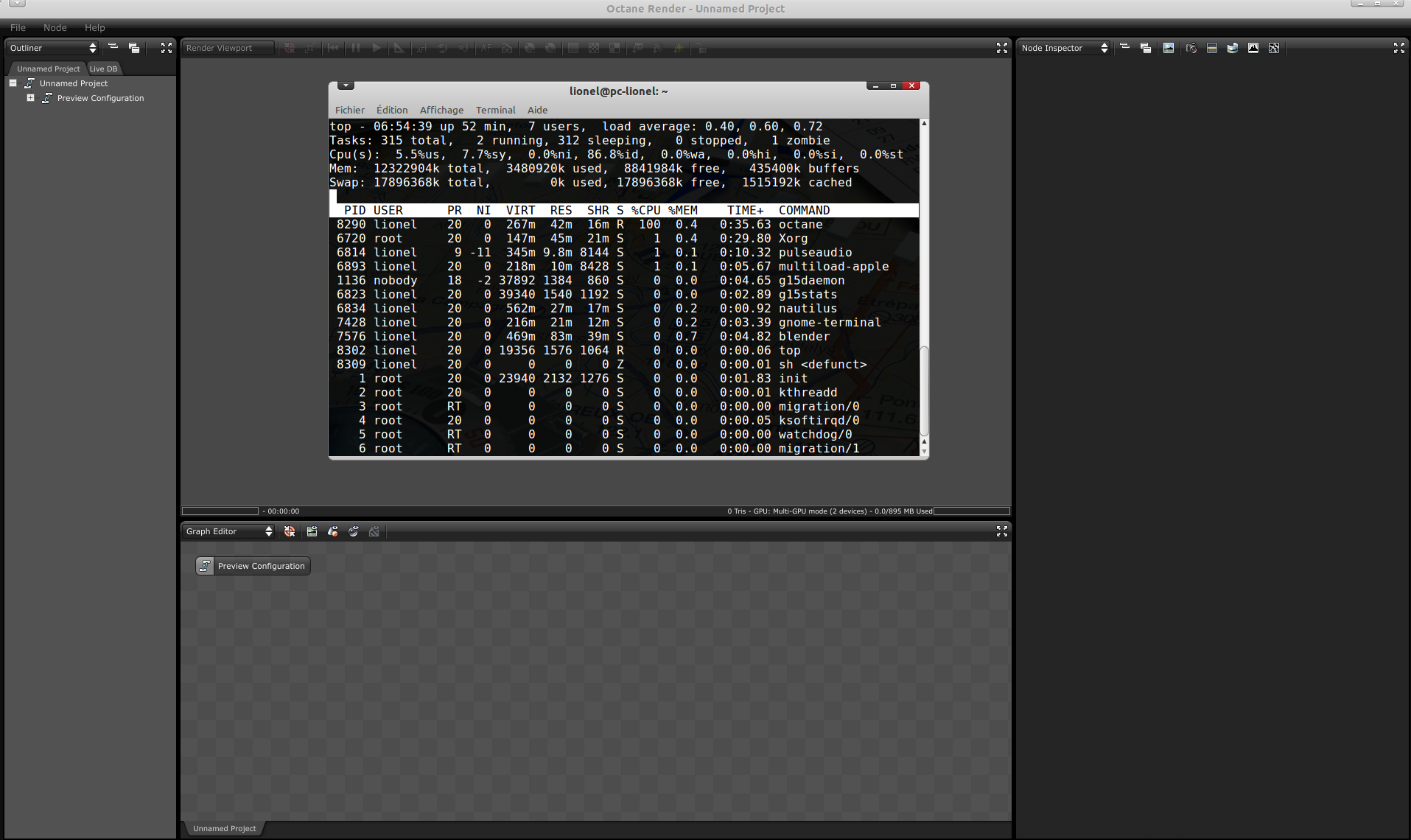 Octane idles at 100% CPU on Linux