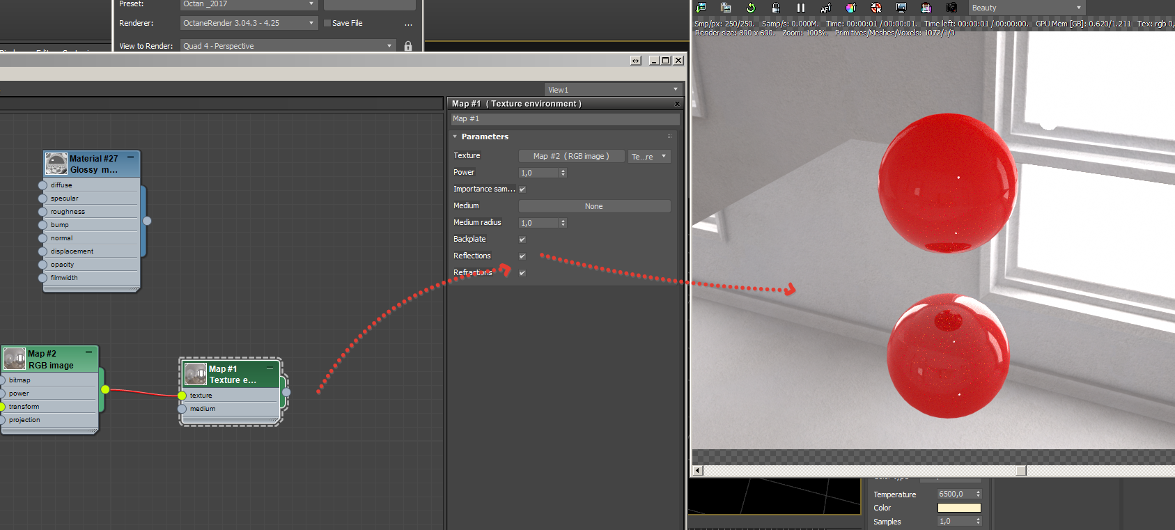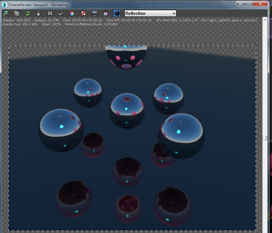 using this method, I have twice rendered the animation ... that would take control of the light in the reflection