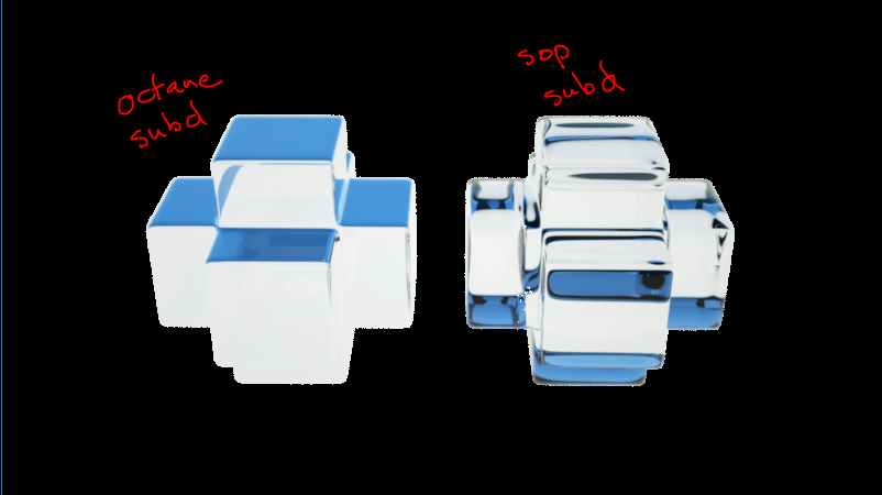 I am trying to render glass with geometry subdivided by octane it looks completely different (and wrong) than if the geometry is subdivided in sops. any idea why that might be?