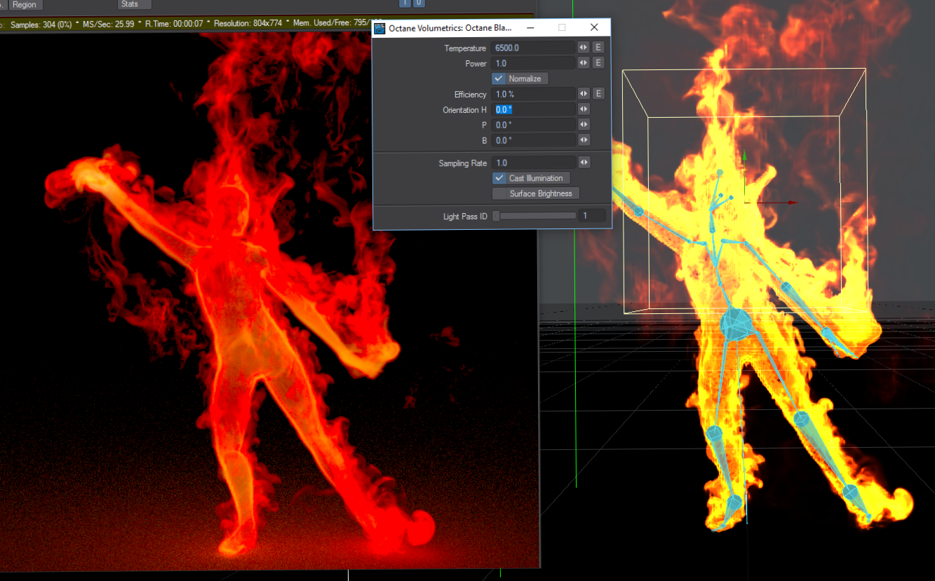 Closer...as we can see the emission does indeed include some of the detail in the temp channel seen in the TFD openGL preview...just showing the values are there and emitting
