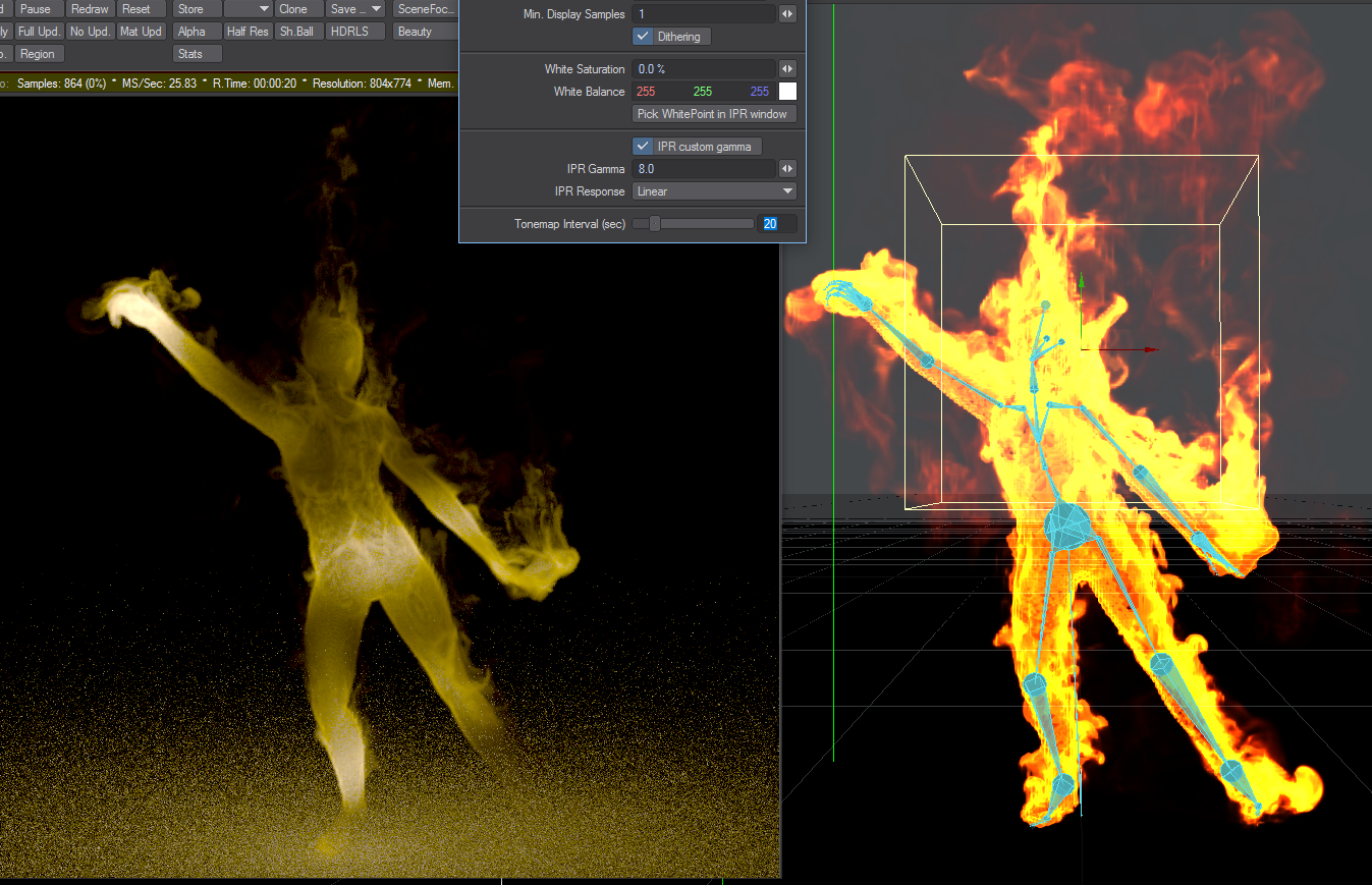 Now look with IPR gamma of 8 Closer...as we can see the emission does indeed include some of the detail in the temp channel seen in the TFD openGL preview...just showing the values are there and emitting
