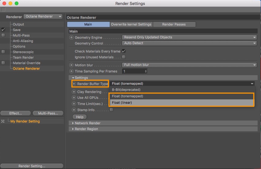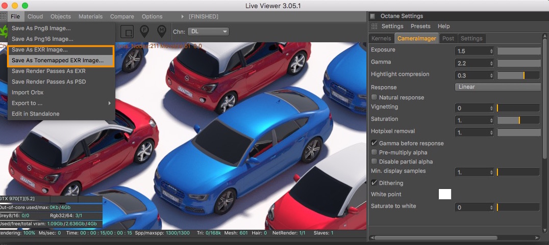 internally OctaneRender always work in linear mode, as said, the camera imager is like the post effect. When rendering in Live View, you can save in both linear mode or Tonemapped mode: