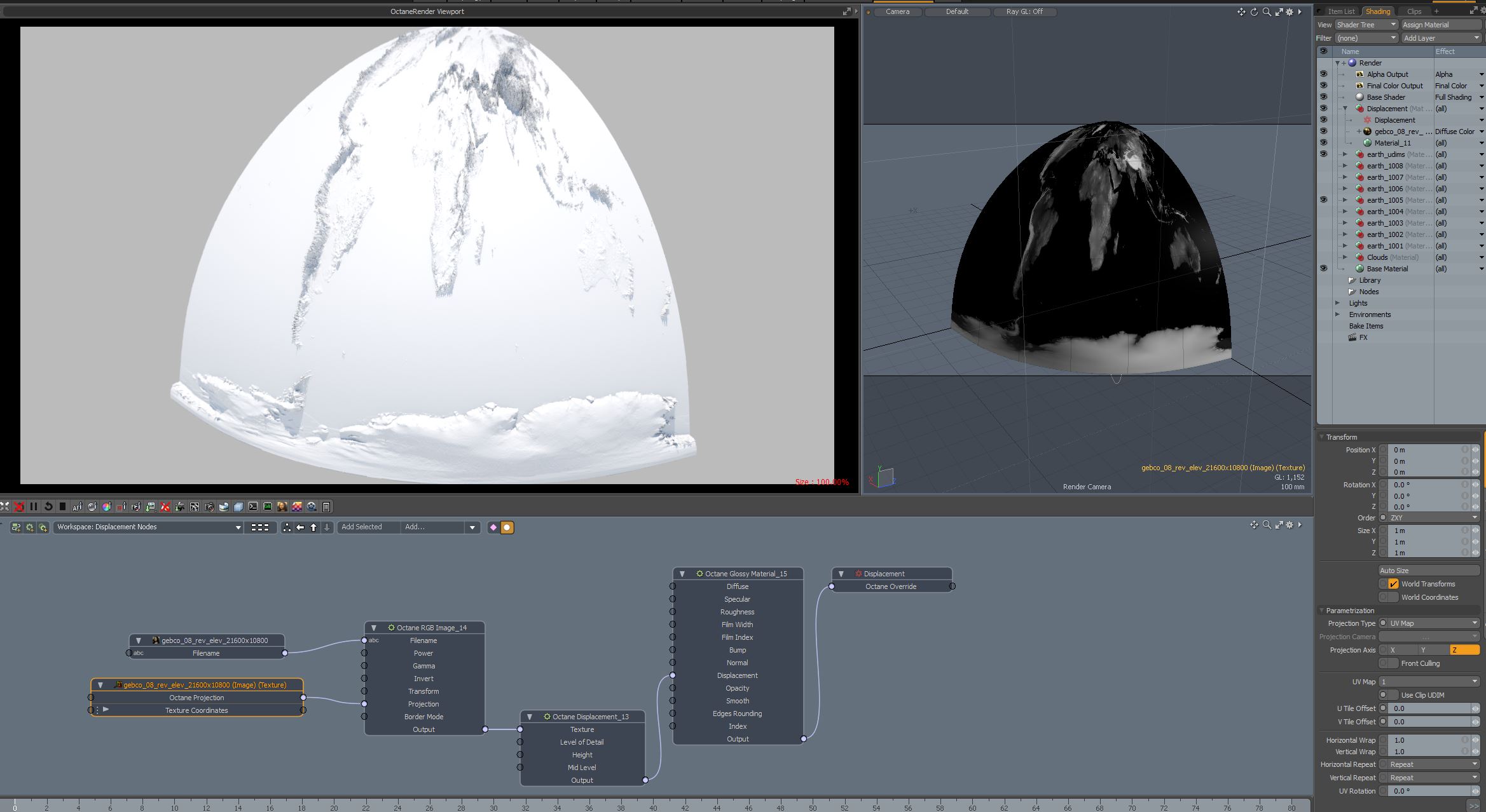 In set 2 I have the entire sphere laid out to fill 0-1 so I can use the displacement map with it. (originally I wanted to use the much higher quality UDIM tile set, but stitched together a lower res image)