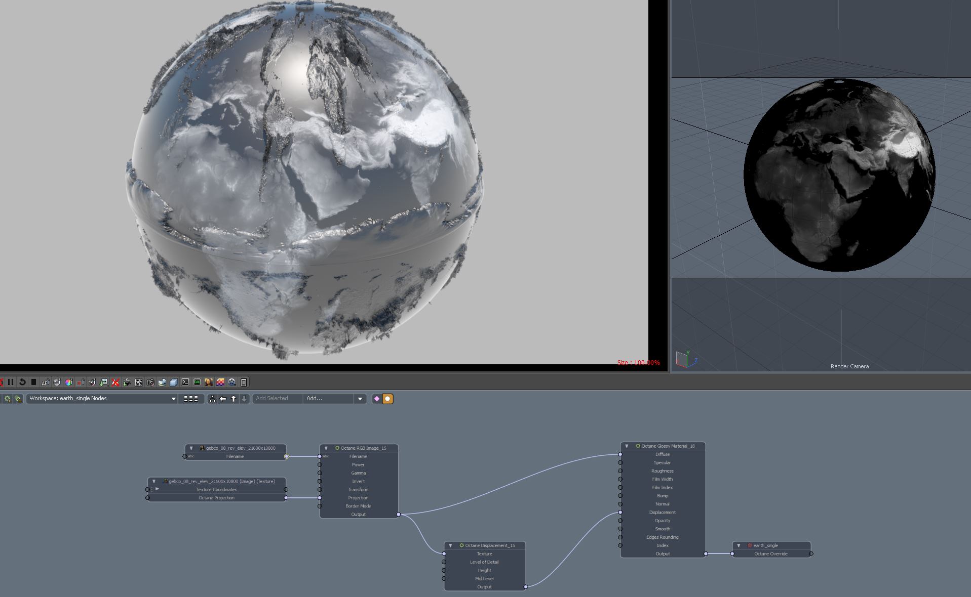 Regarding your issue in the last image, I would need to see the mesh to comment. Perhaps there are some very long, thin triangles, which do not handle being displaced well in Octane. If you are prepared to put up with the limitations of the Modo Render Cache - you could apply the displacement map directly to the mesh in Modo, and then load the micro-displaced mesh into Octane. https://docs.otoy.com/manuals/products/ ... specifics/. Enable the Polygon Displacement option in the Kernel->Settings panels to do this.