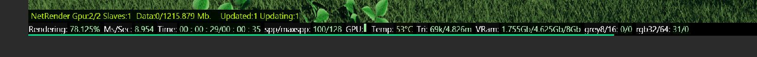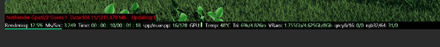 I grabbed two shots just a few seconds apart from the frame appearing on the Picture Viewer as it rendered. Notice how the gpus don't show as working then suddenly show.