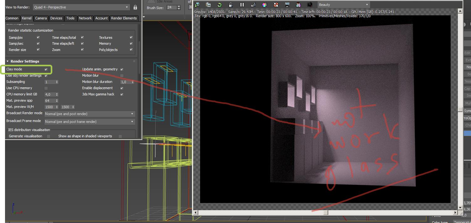 as a quicker option is to use Clay mode but this does not work the passage of light through the glass