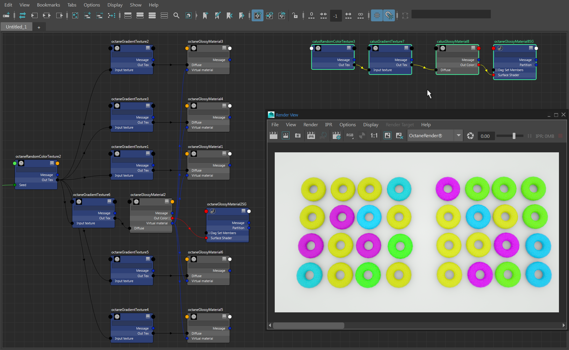 Also do you realize that this result (without the bugs) is done and edited 100 times faster when not using Virtual Material but using only one material one gradient and one Random Color Node ?