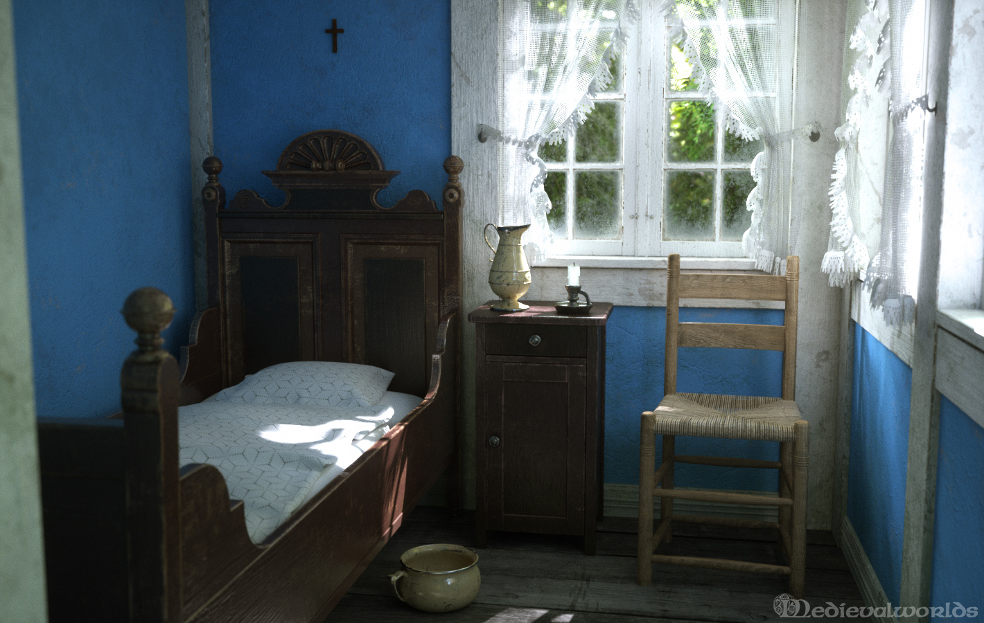 Reference for this was the 17 century Bedroom of the Fisherhouse in the Kiekeberg Museum near Hamburg, Germany. However, I used different wall colors and different chair and curtains here. Created with Lightwave, Octanrender, Substancepainter and Marvelousdesigner.