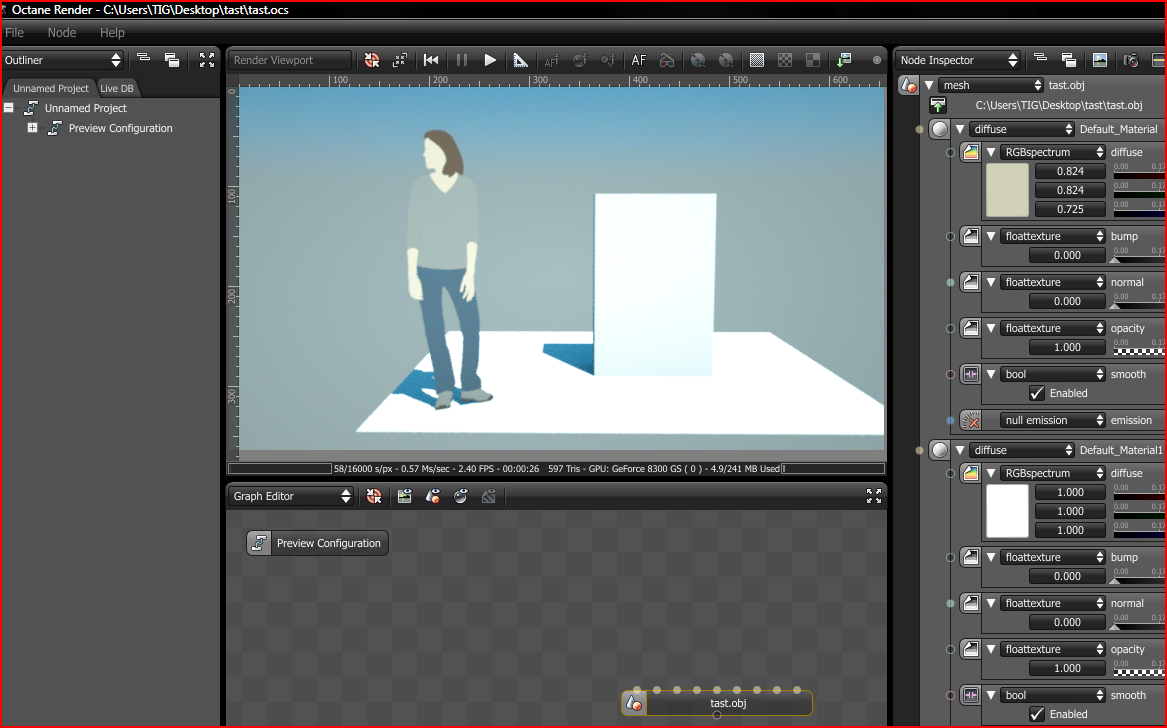 I also imported your OBJ file back into an empty SKP [tast.SKP in the zip] - which worked fine - and then I Exported it as tast.OBJ etc and opened as 'tast.OCS' which rendered fine too [also in the zip file]... I've attached the zip and the two images and a screen-shot of my Octane OBJ import settings in case you have something set oddly... Please let me know if you find the 'culprit'...