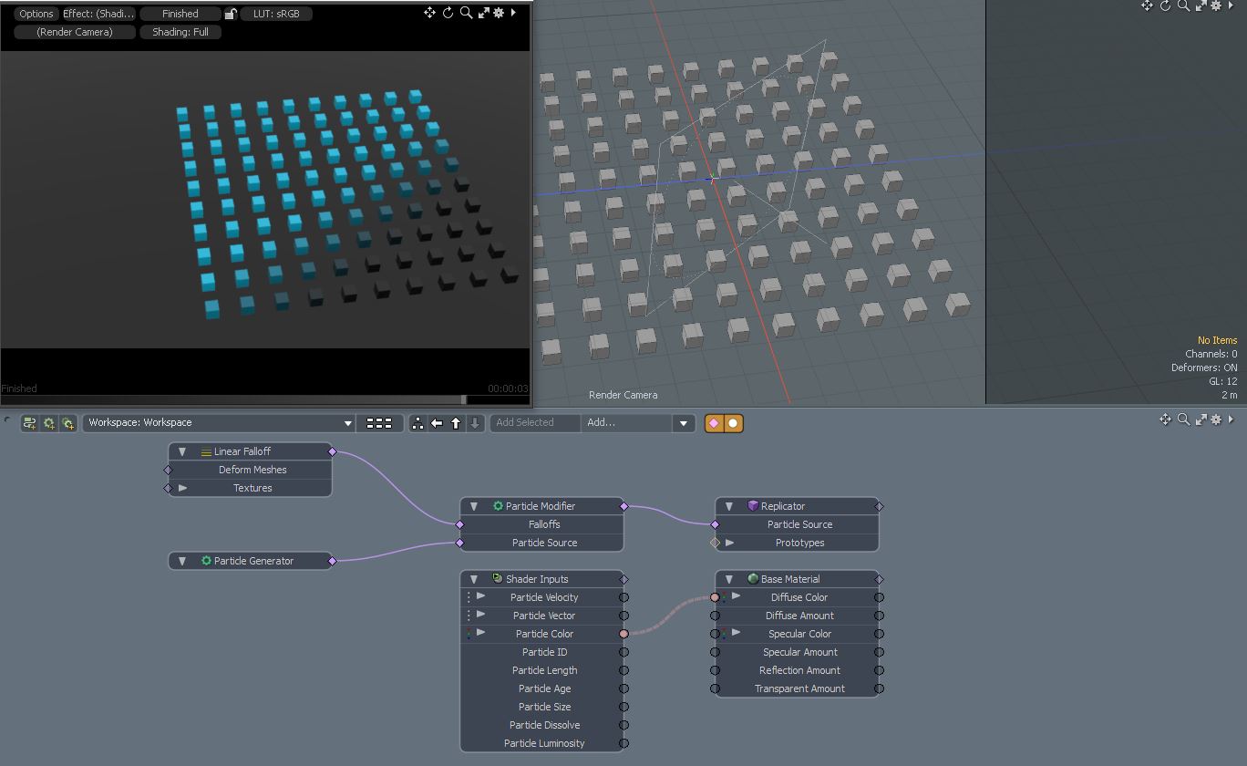 Like this setup in the modo render, as you can see the linear falloff drive the blue color this is what i would like to be able to replicate.