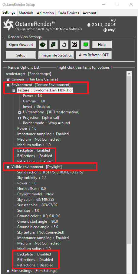 Hi. Delete the skydome, and put the HDRI that was on the skydone in the Visible Environment Texture.