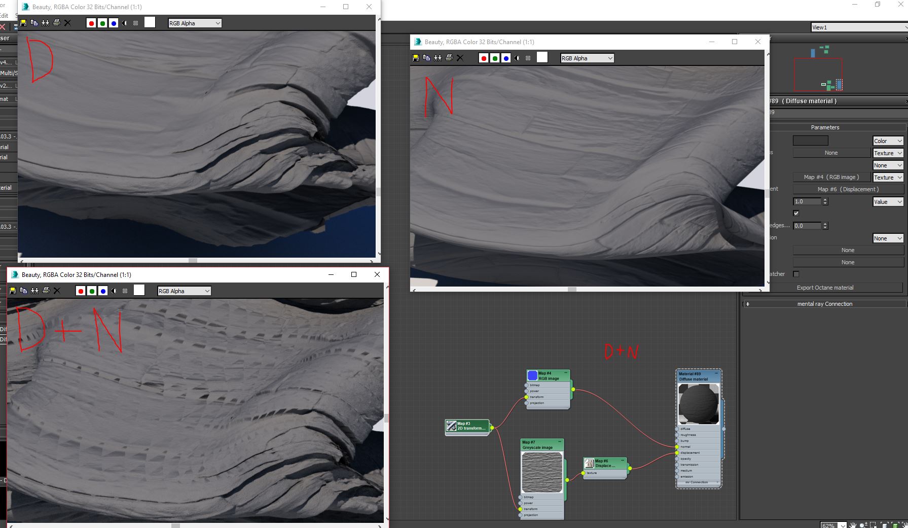 I need both because the normal map is providing fine detail and the displacement map is a more large scale surface adjustment.