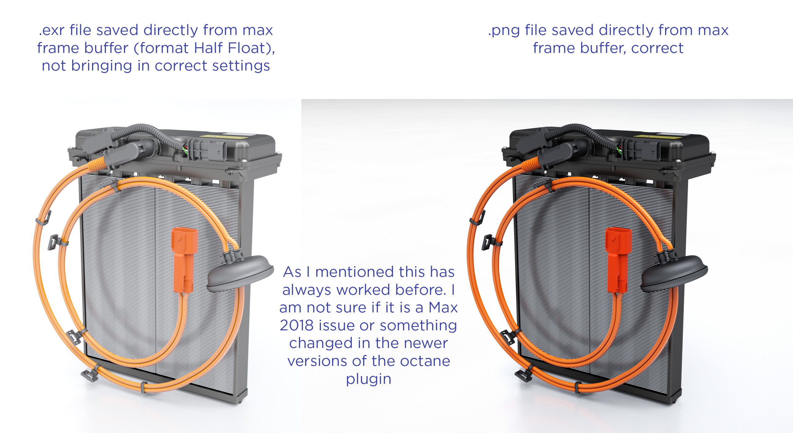 I am not sure when this difference in the .exr may have occurred as we just recently switched to Max 2018 from Max 2017 and we also made the switch from the older version of Octane 3.06-4.33 to 3.06-4.39. It was working correctly in Max 2017 Octane 3.06-4.33. Thanks.