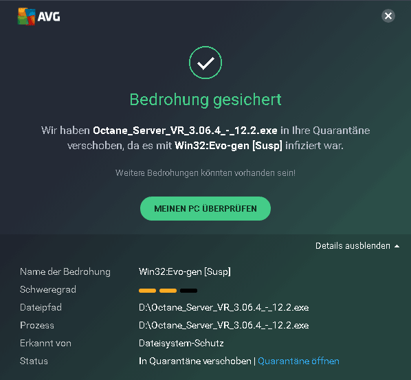 of both Blender Octane and the server AVG asks if it's OK to run both applications. I give permission