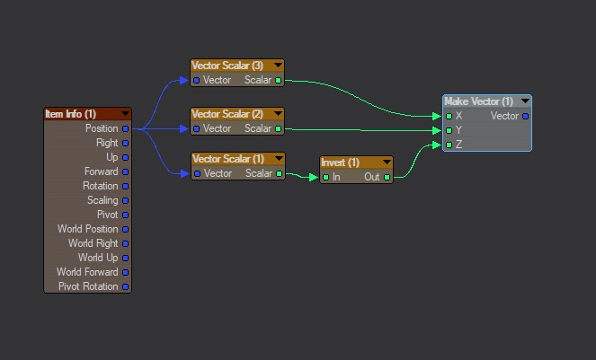 I can get it to invert (-100 scale on the Add Scaled Node) But then it inverts on the X axis also... Is there a way to invert only the Z-Axis?