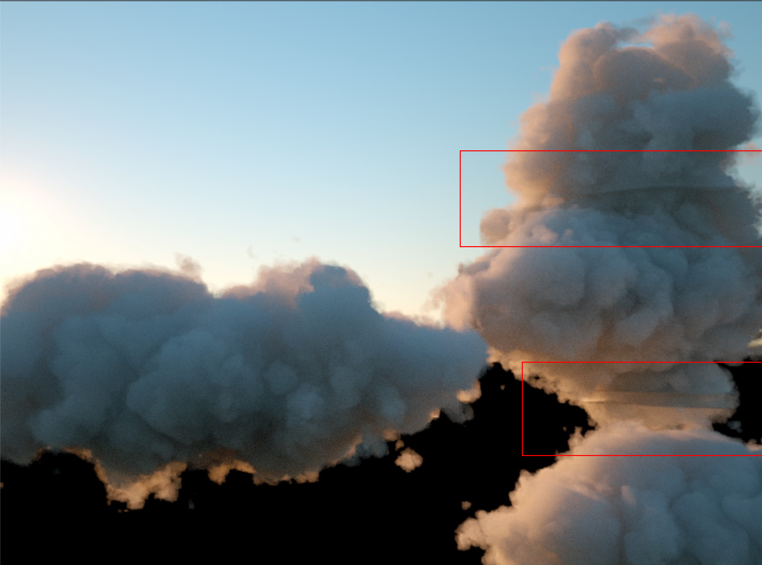 I am trying to setup a nice cloud scene with VDB's that I have made. I have copy/pasted a few of them and the areas where the bounding box seems to end is creating ugly straight shadows in areas. Anyone know how to fix this or is it even possible to fix?