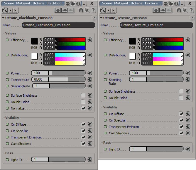 Updated Emission shaders with the options to en/disable double sided emission.