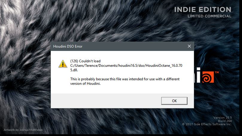 I am unable to install the latest Octane plugin, 3.07, in Houdini 16.5.