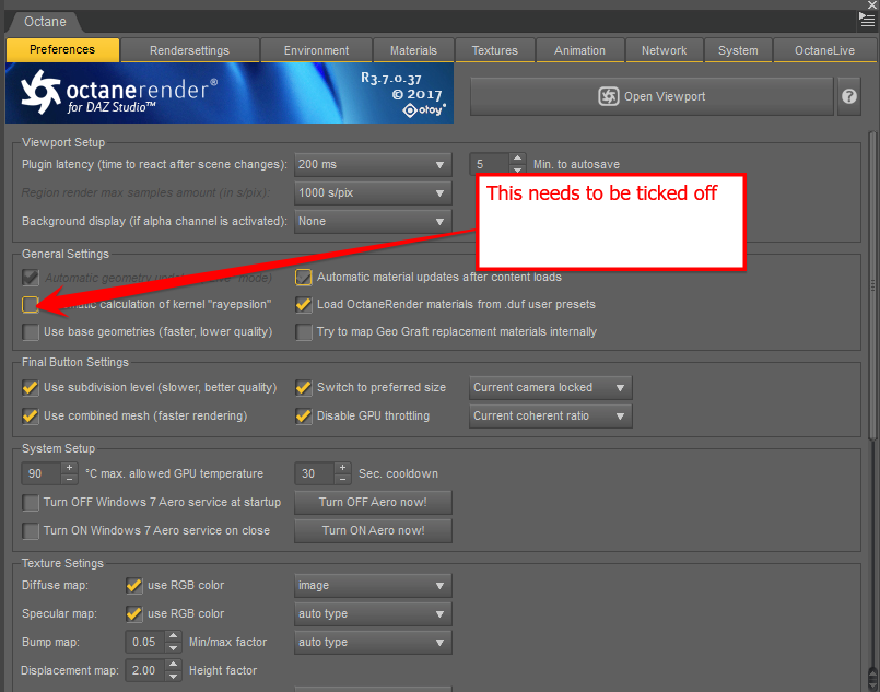 Daz for Octane Ray Epsilion wont keep settings