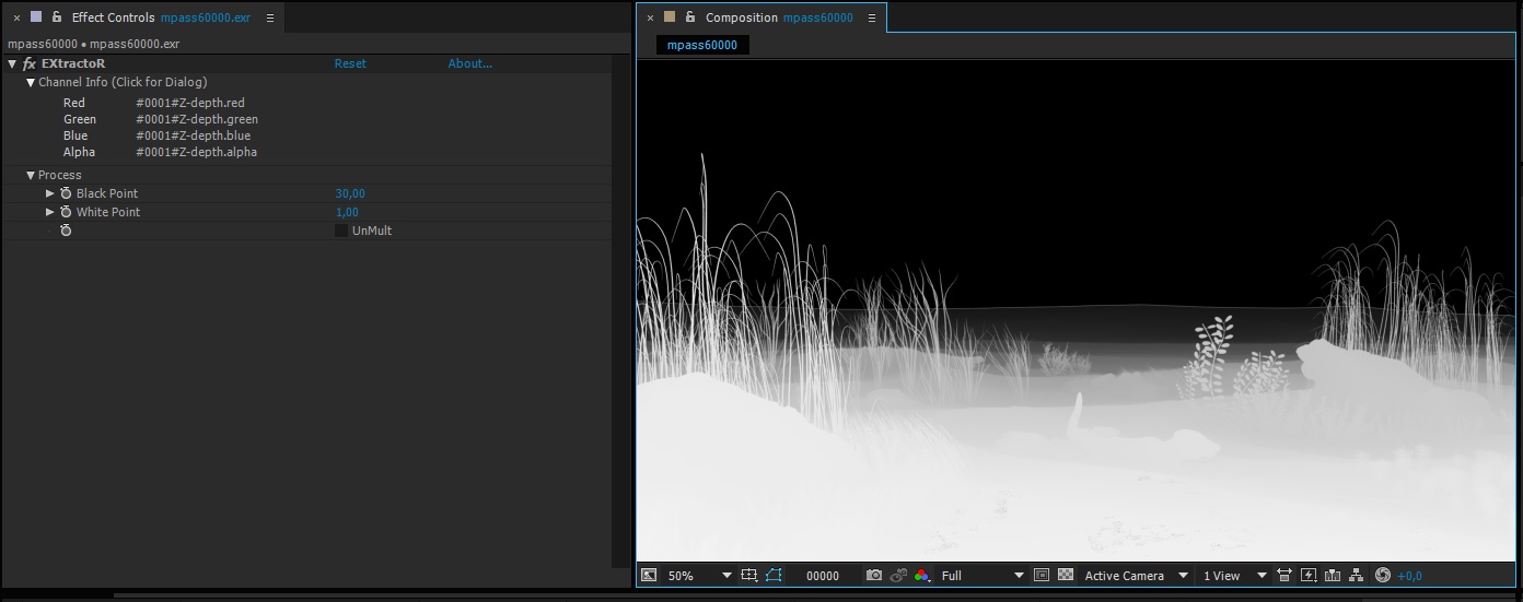 beauty image (with alpha channel, without straight alpha) + multipass zdepth (pre-multiply off, alpha channel on, keep environment off)
