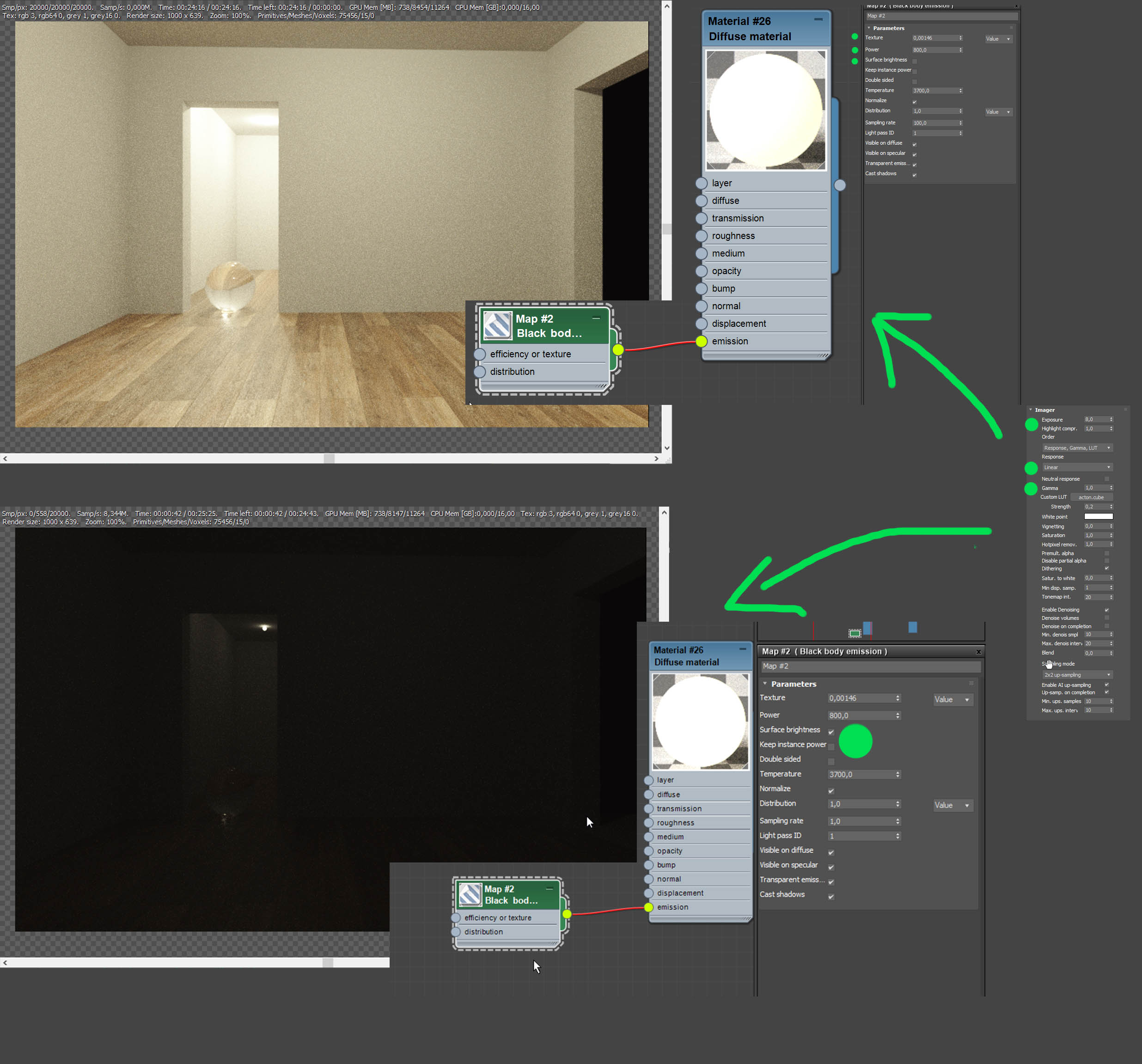 thank you for your reply. I know I can increase exposure value like a real world camera. My problem is octane light emission's surface brightness option. I can't be sure that I must enable or disable it for a real world light simulation.