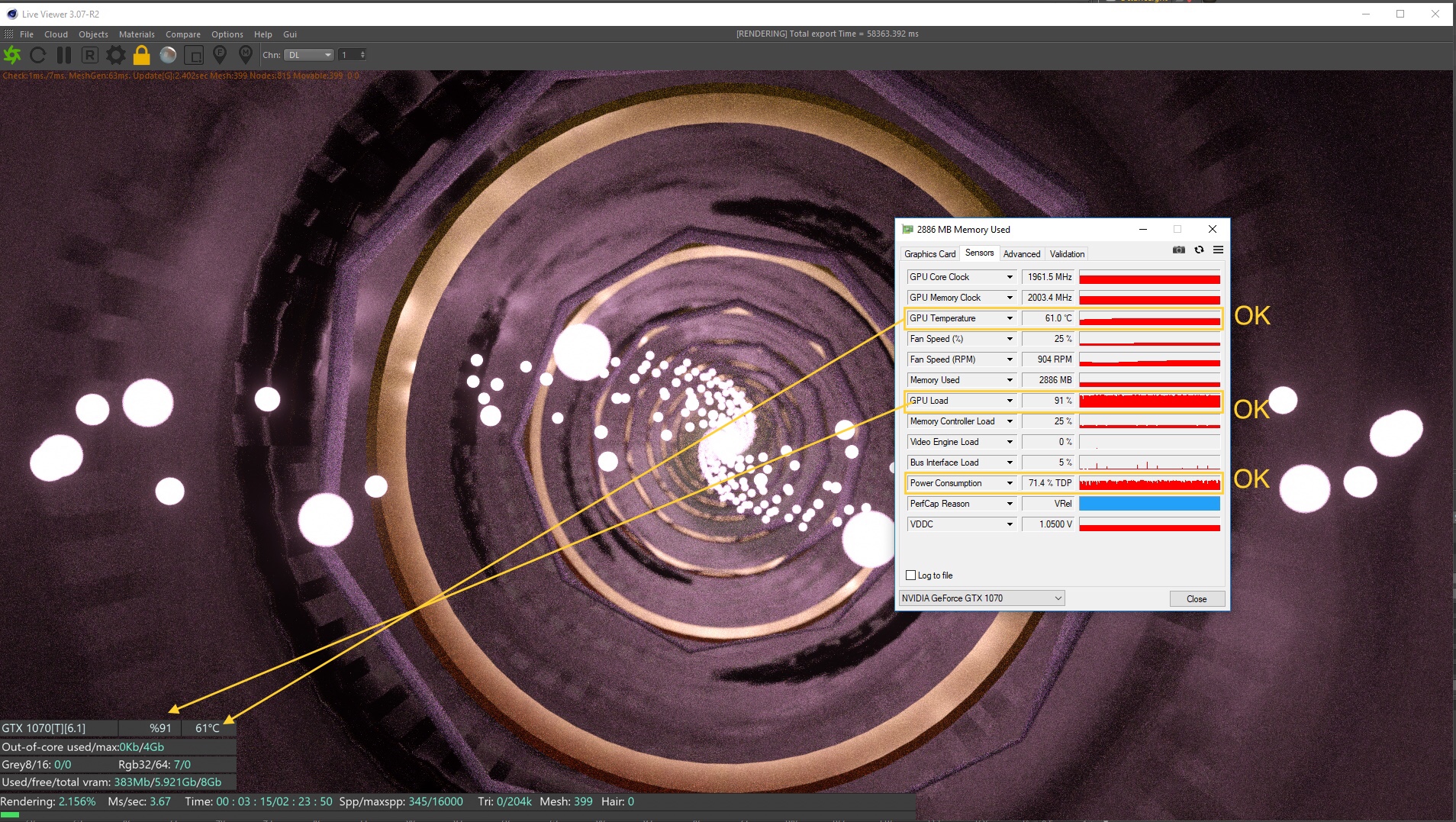 GPU-Z reports that the GPU is working perfectly while rendering: ciao Beppe