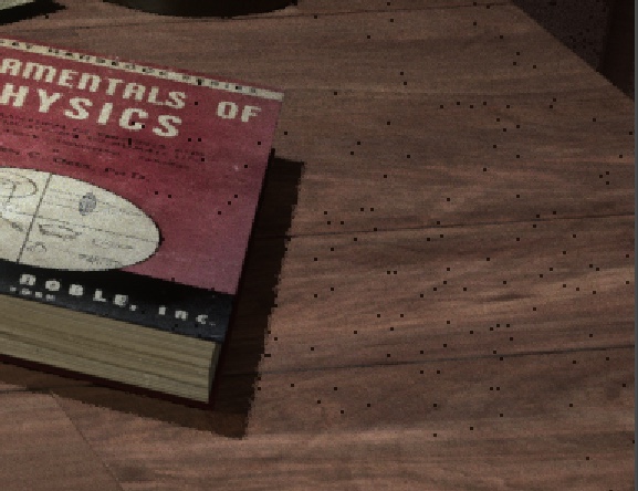 You could try changing group pixels to 'None' and noise treshold a bit lower. I'm 100% sure that this can be fixed by adjusting the adaptive sampling settings but because it's such a long render you could also try locking (padlock) and lowering the resolution in the LV by changing the scale value (the number next to Chn:) to 0.5 or 0.25 and monitoring how noise pass looks like. And then experiment with different Expected Exposure and Noise treshold settings, even really extreme ones. Then, once you're sure that adaptive sampling is not masking the area on the desk with the dots too early and it looks clean in low res you could switch back to full to see if it improves anything. Of course, disabling Adaptive would be a last resort measure I guess. Also, I have to say, rendertime is unusually high for a simple scene like that so there must be a way to optimize it more. How did denoiser do in V4? Also in V4, because that lamp is a small light source, you could try to enable AI Light and see if that cleans the image a bit faster or maybe even scale that light a bit up.