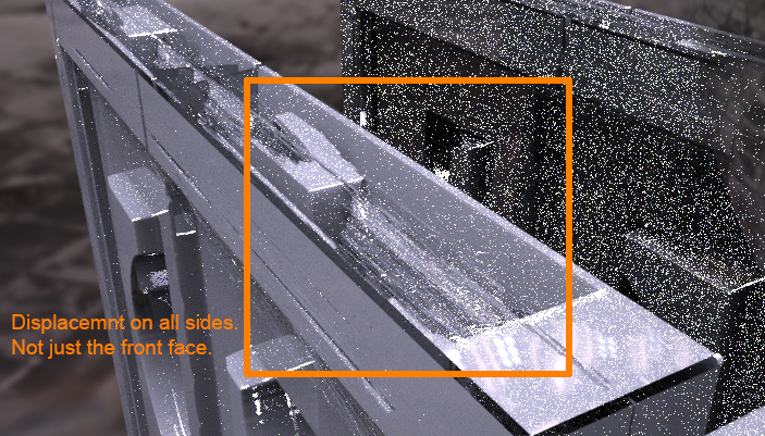 1. Once I bevel the edges, the displacement map separates at the edges. I understand this is because I'm breaking the UV's once I bevel and tried using box mode but that just makes every side of the box have the displacement instead of just the front face. I've tried making the object editable and selecting just the front polygons but i still get the funky edges.