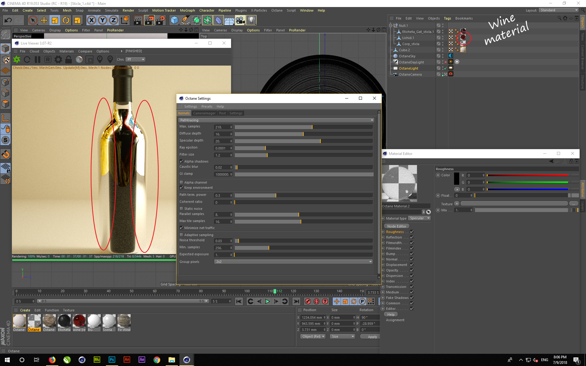 I'm trying to make a bottle of wine in Cinema 4D using Octane Render.