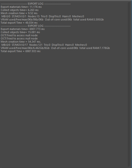 In the actual scene I want to render (not the one shown in the images) I also get "tried to access null node" appearing on the console. Not sure if that's an issue but any explanation for this error as well would be greatly appreciated.