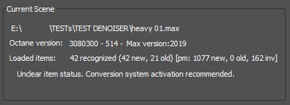 When Activate V1 Support or Enable V1 Scene Info are enabled, Octane checks the parameters of all materials, searching for 'old' ones.
