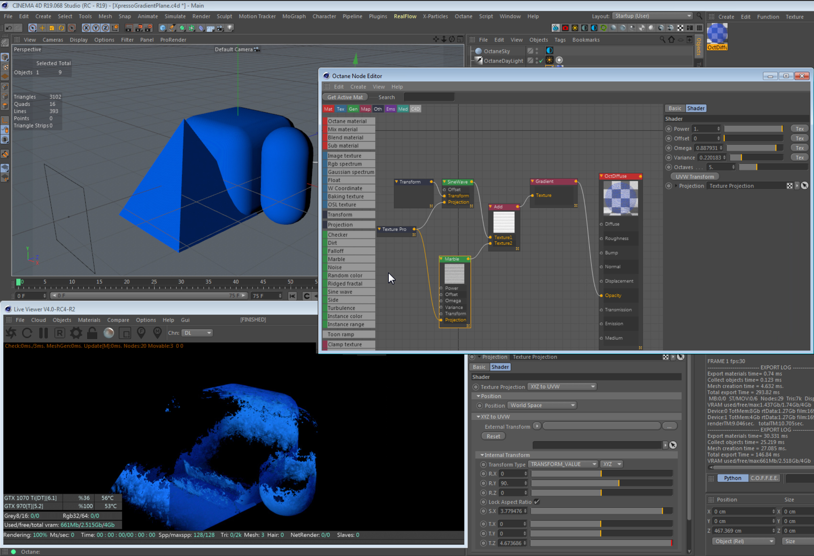 But I can't do the same with Octane material, neither with an Octane gradient nor with a C4D gradient.